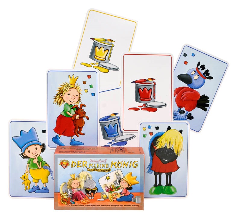 Der kleine König und seine Freunde ist ein lustiges Kartenspiel für Kinder ab 3 Jahren. Bei diesem Spiel geht es darum, die verlorenen Farbkarten zu sammeln und somit den kleinen König oder seine Freunde glücklich zu machen.