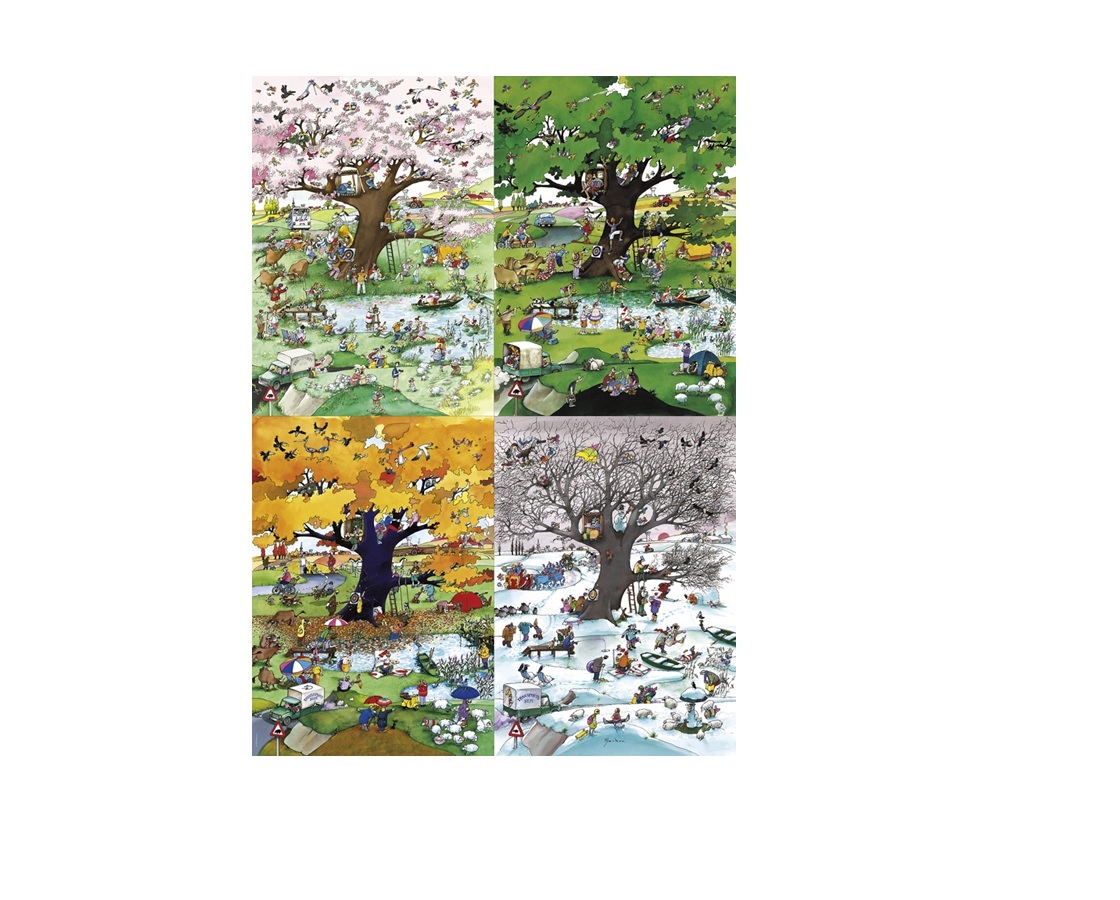 In diesem Bild geht es um die vier Jahreszeiten, was in dem Fall als Baum im Mittelpunkt dargestellt wird.