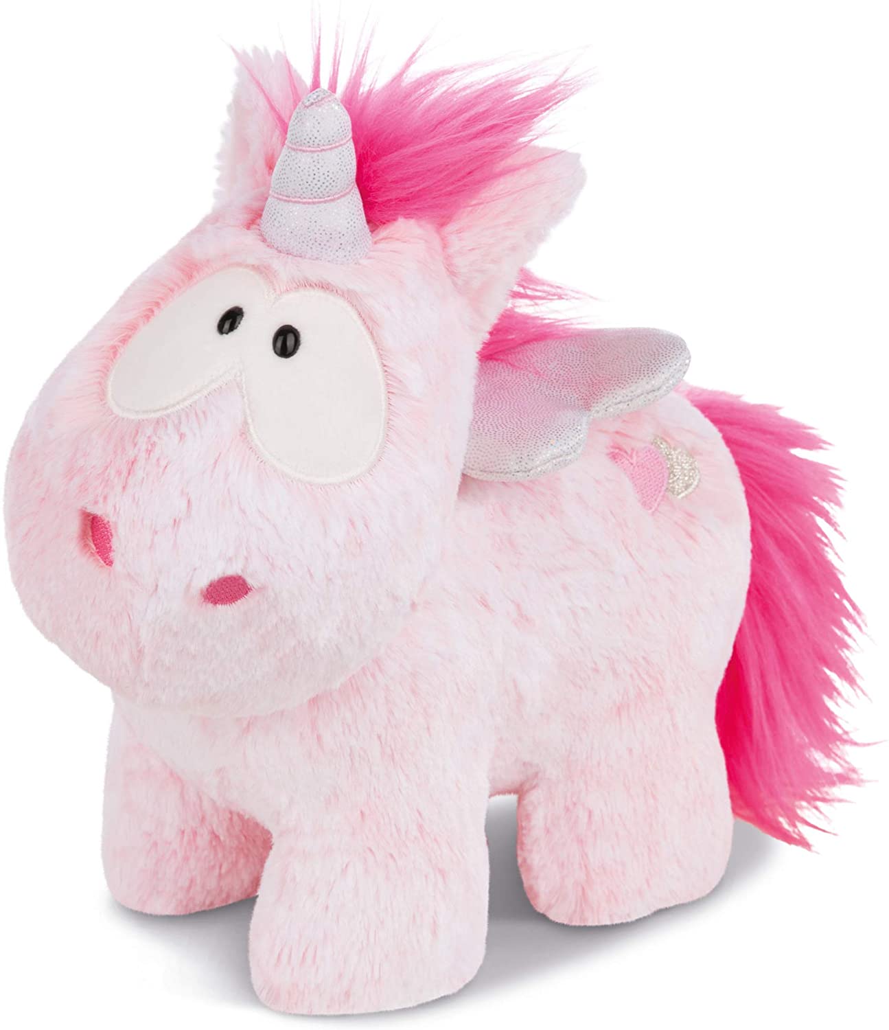 Das rosafarbene Einhorn Pink Diamond aus glitzerndem Plüsch mit weißer Mähne und Schweif sieht mit dem glänzenden, pinken Horn auf der Stirn und einer edlen Diamant-Bestickung auf der hinteren Flanke ganz bezaubernd aus. Durch das flauschig-weiche Plüschmaterial ist das stehende Einhorn Pink Diamond, das es in den Größen 13, 22, 32 und 45 cm gibt, ideal zum Kuscheln, Träumen und Liebhaben.