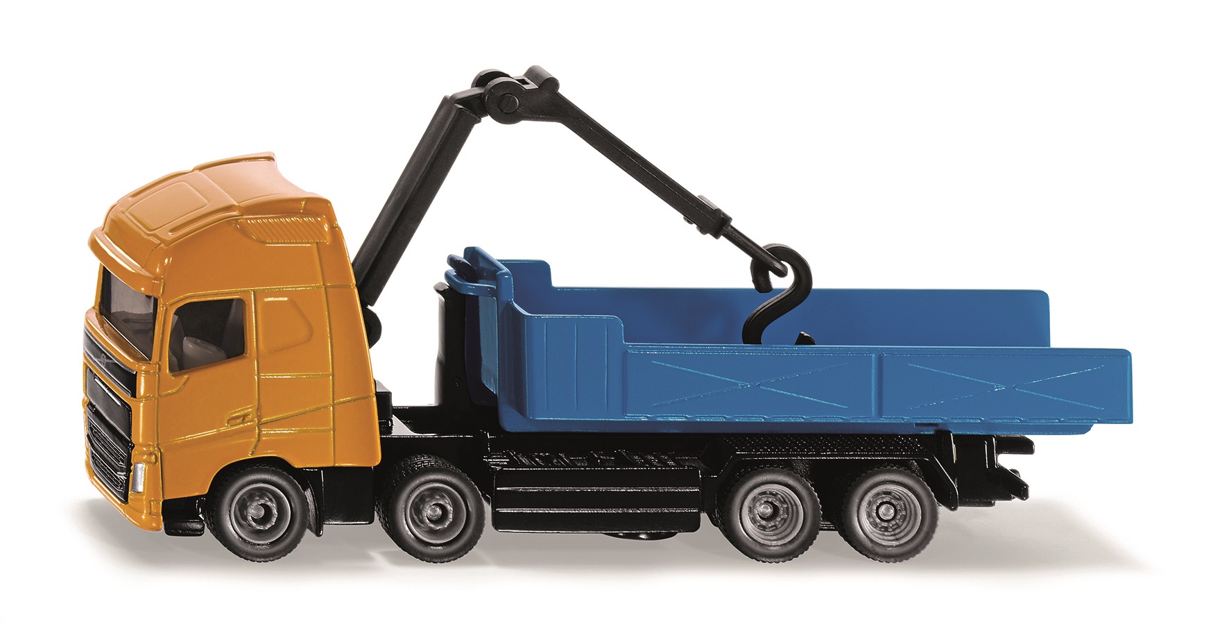 500 PS, vier Achsen, Hakenlift und Kran: Der SIKU SUPER Volvo FH Abrollkipper (Maßstab 1:87, UVP 7,99 Euro) ist der Multifunktions-Lkw für die Baustelle.