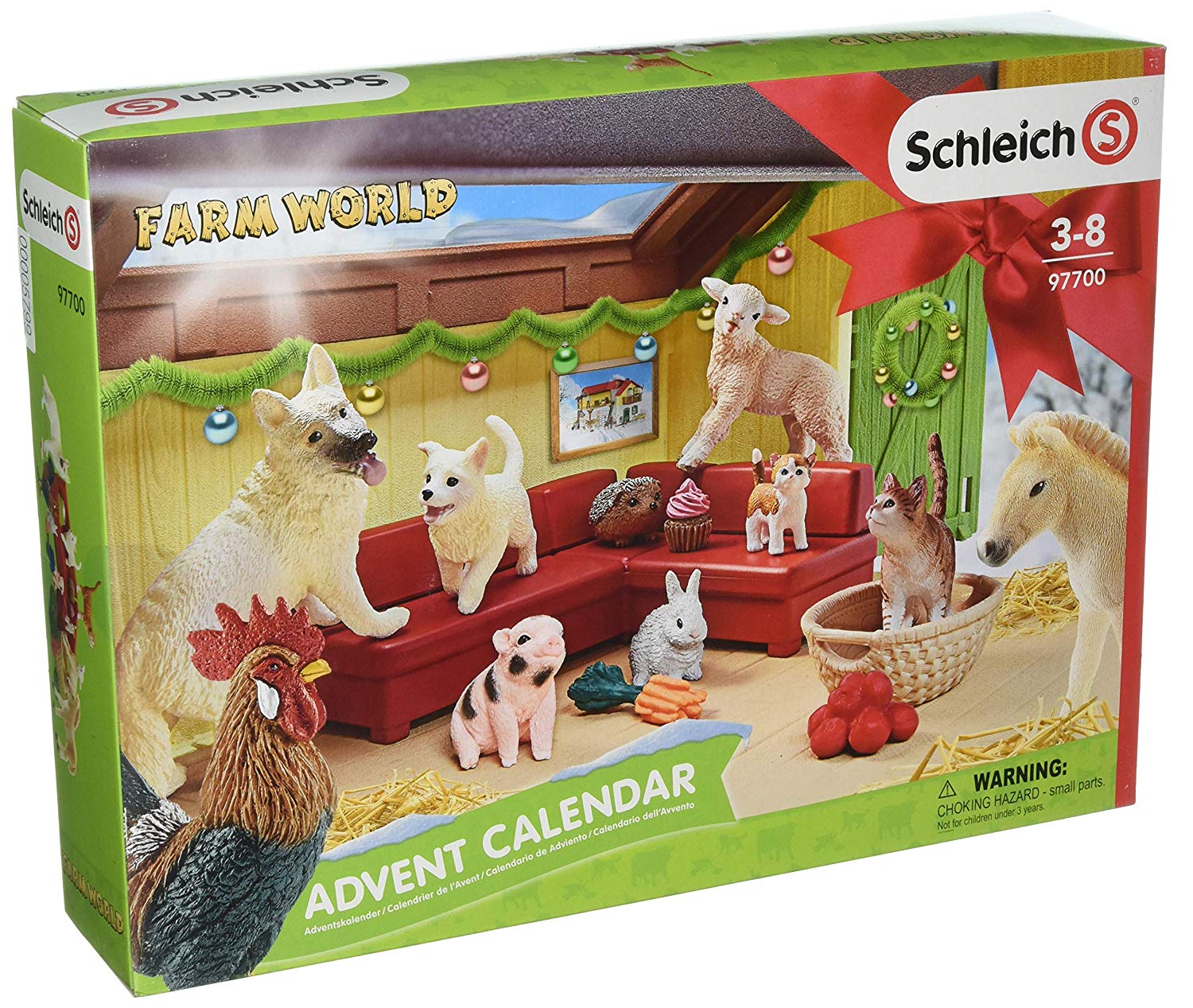 Dieser besondere Adventskalender lädt zum Weihnachtsfest auf dem Land ein: Besonders putzig sind der weiße Schäferhund und sein niedlicher Welpe, die der Adventskalender neben einer Katze und ihrem verschmusten Katzenbaby beinhaltet. Außerdem können kleine Tierfans weiteres Zubehör für ihren Schleich Bauernhof sowie ein Schäfchen, ein Fjord Fohlen, ein Mini Schwein, ein Kaninchen Junges, einen Igel und einen Hahn hinter einem der 24 Türchen entdecken.