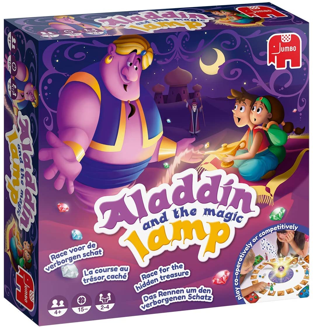 Oder jeder gegen jeden. Aber bei beiden Varianten geht es darum, fünf magische Edelsteine in der Wüste zu finden. Aladdin und die Prinzessin sowie der Zauberer suchen diese Edelsteine, denn der Geist in der Wunderlampe gehorcht demjenigen, der sie besitzt.