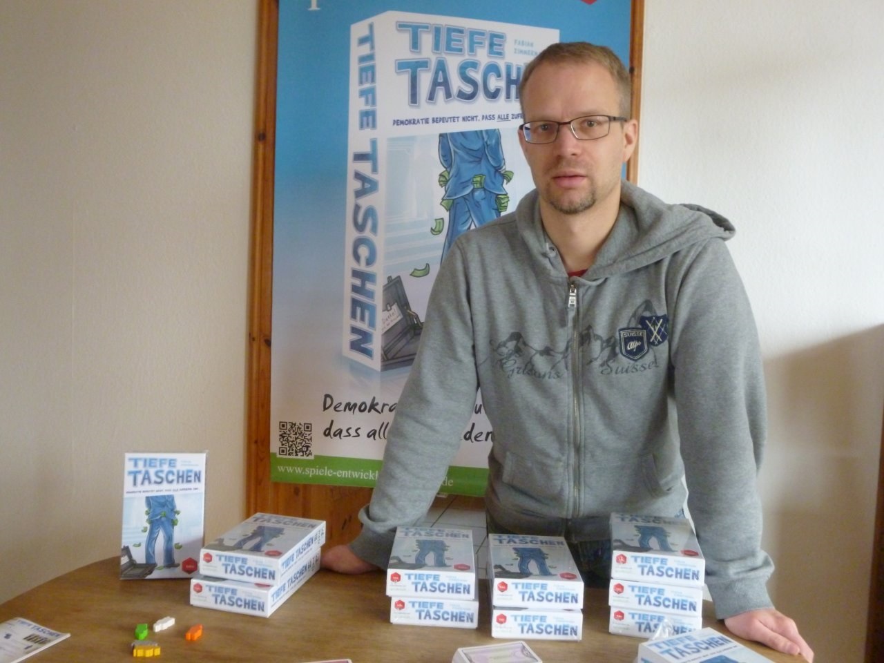 Auf einer Grillparty kam dann schließlich der Gedanke, dass ein ähnlicher Spielemechanismus auch sehr gut zum Thema Politik passt. Und natürlich ist Tiefe Taschen nicht ganz ernst gemeint, sondern sollte mit Humor genommen werden.