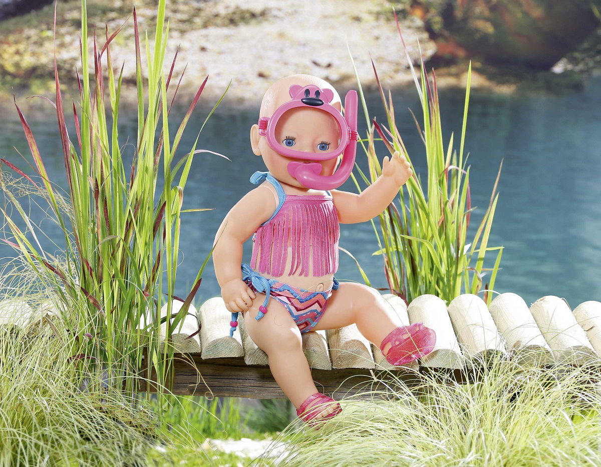 Tauchen, Paddeln oder einfach nur das kühle Wasser genießen – BABY born® und ihre Puppenmama sind für alle Freizeitaktivitäten gewappnet.