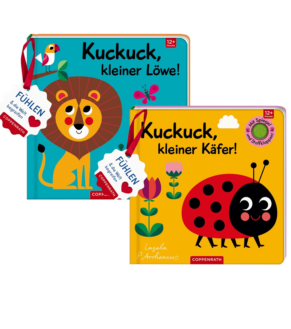 Wo haben sich der kleine Löwe und seine Freunde versteckt? In „Kuckuck, kleiner Löwe!“ und „Kuckuck, kleiner Käfer“ können Kinder ab 12 Monaten auf Entdeckungstour gehen. Große Stoffklappen laden dabei zum Mitsuchen und Spielen ein. Und im Spiegel auf der letzten Seite entdecken die Kleinen: Das bin ja ich!