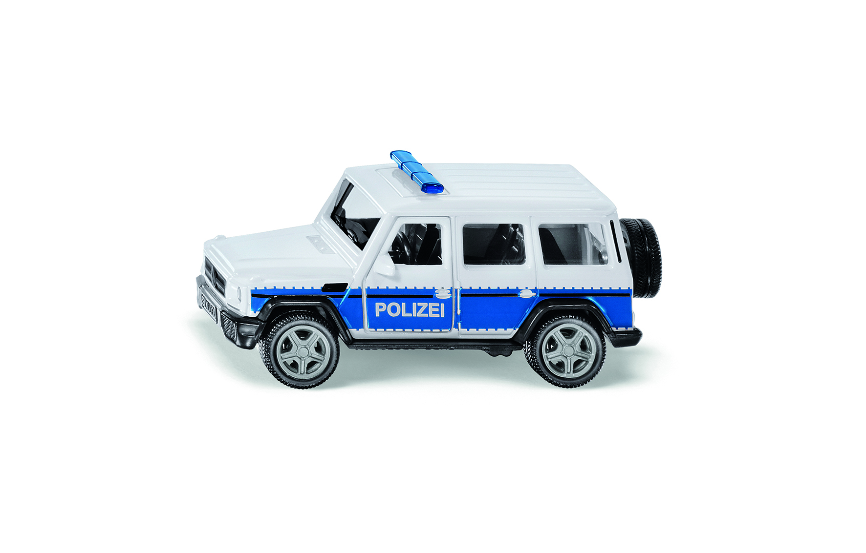 Die beiden vorderen Türen und die Heck- türen lassen sich an dem Fahrzeug öffnen, außerdem können die Räder abgenommen werden. Das G-Modell ist eine kräftige Zugmaschine. An der Anhängerkupplung können deshalb zu- sätzlich SIKU Anhänger gezogen werden.