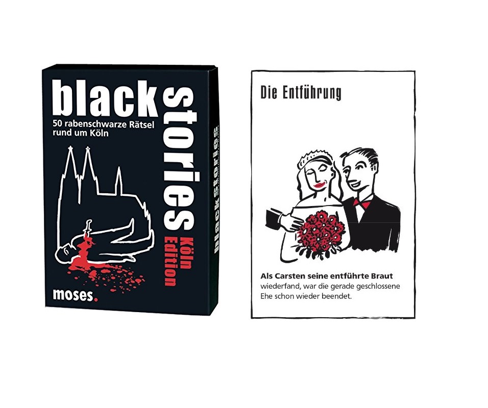 Verteilt auf 50 Karten werden den Spielern „rabenschwarze“ Geschichten rund um die Stadt Köln erzählt. Eine Person stellt ein Ereignis bzw. eine Story vor, die anderen Teilnehmer müssen erraten, wie es dazu gekommen ist.