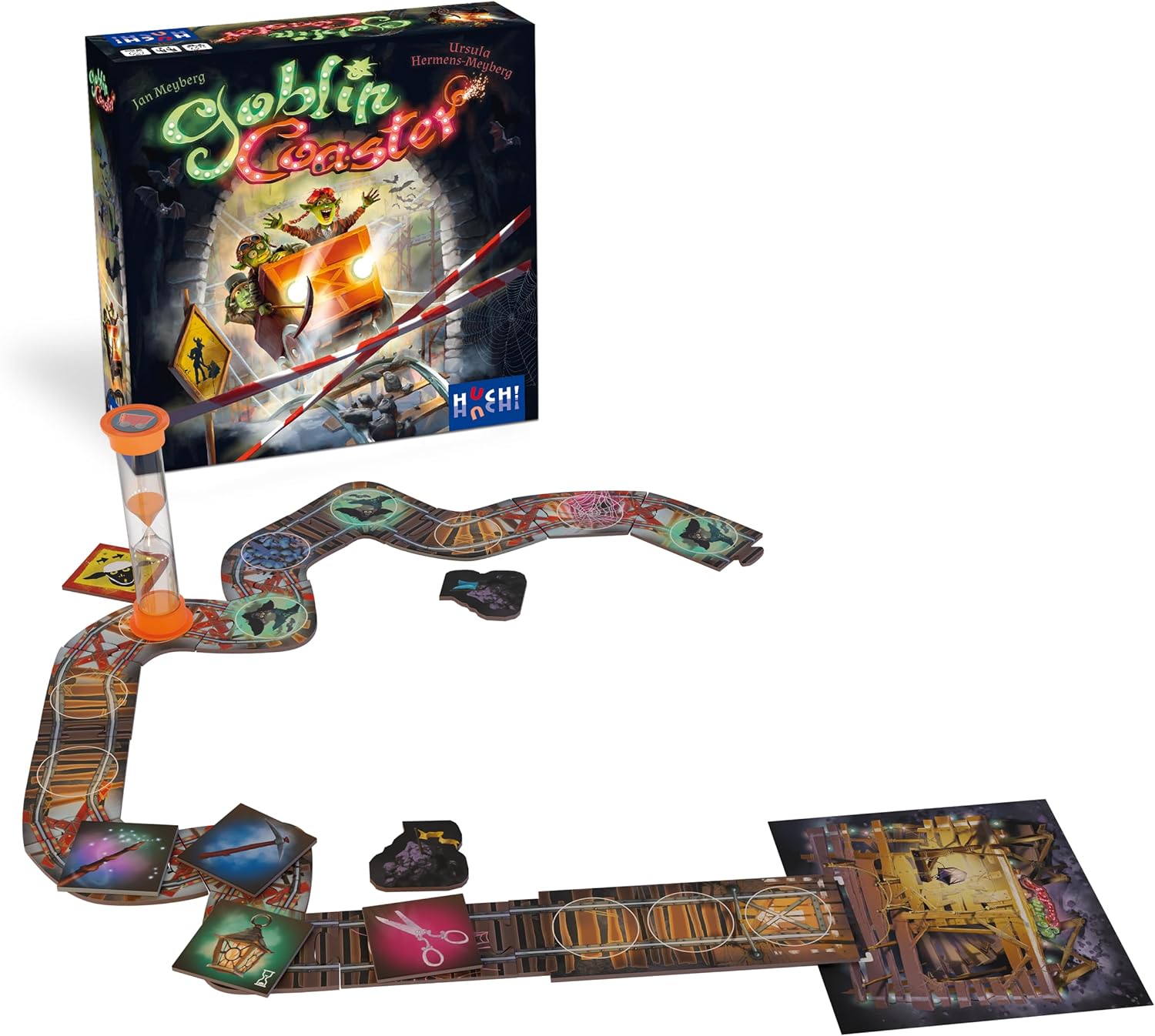 Der Goblin Coaster ist eine verrückte Achterbahn, denn kurz vor der Fertigstellung schicken die Goblins aus Versehen schon den ersten Wagen los – aber die Schienen sind noch nicht fertig gestellt! Wird der Wagen in den Abgrund stürzen oder schaffen es die Goblins in gemeinsamer schneller Kooperation die Schienen zum rettenden Ende zu legen? Goblin Coaster ist ein hektisches kooperatives Spiel mit Sanduhr, Witz und jeder Menge Spaß.