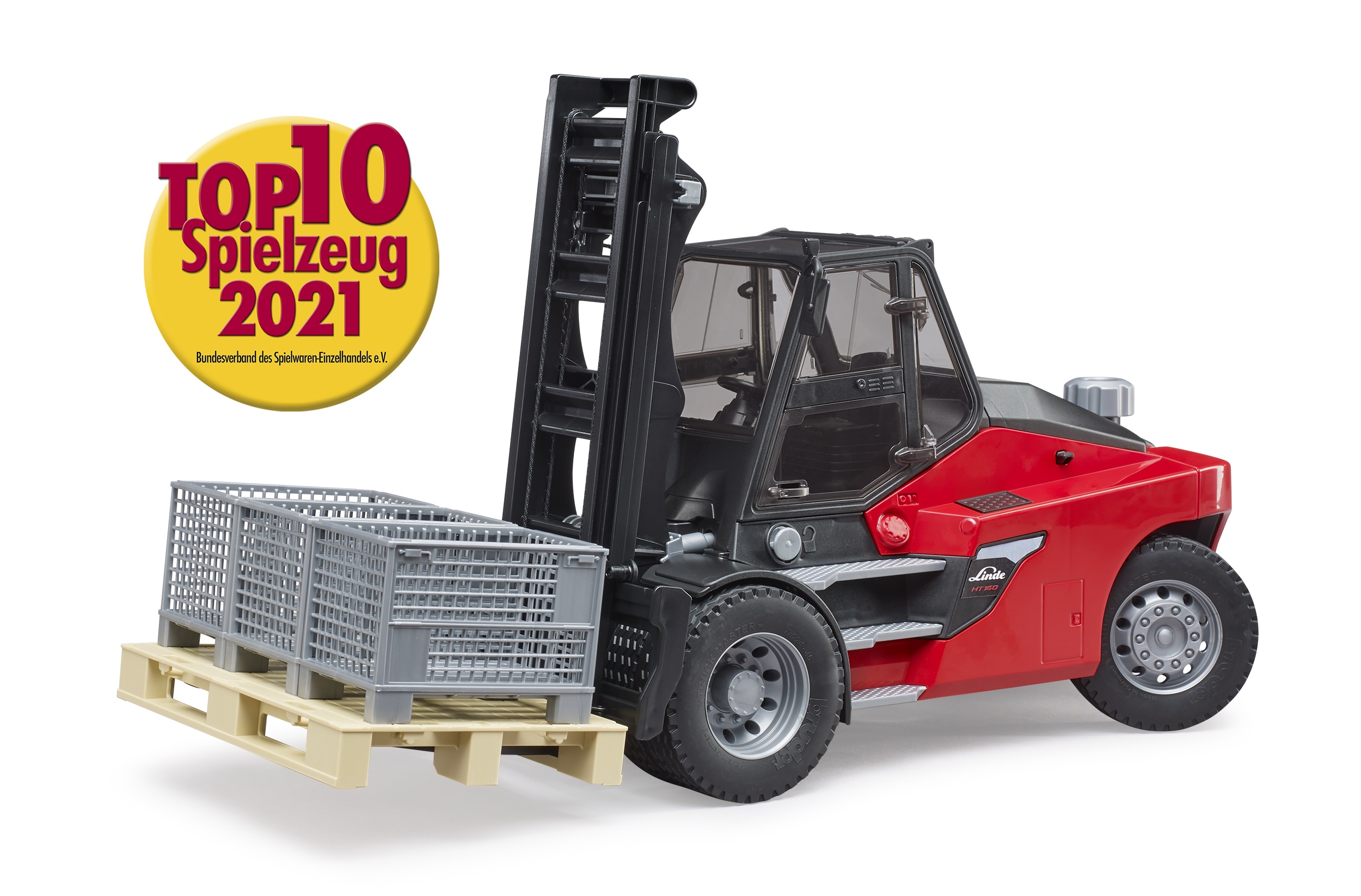 Mit dabei: der neue Linde HT160 Stapler aus dem Hause des fränkischen Herstellers BRUDER Spielwaren GmbH + Co. KG.