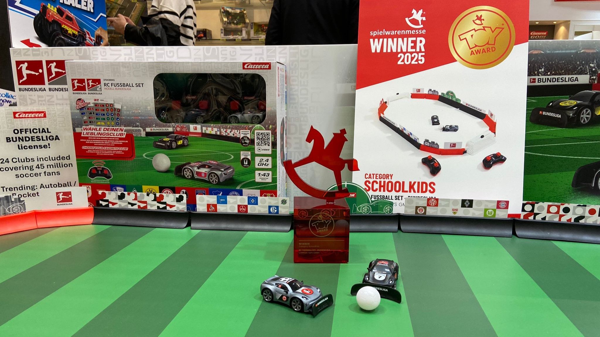 Große Freude bei Carrera: Das brandneue RC Fußball Set – Modell Bundesliga wurde heute auf der Spielwarenmesse Nürnberg mit dem renommierten ToyAward 2025 in der Kategorie SchoolKids ausgezeichnet.