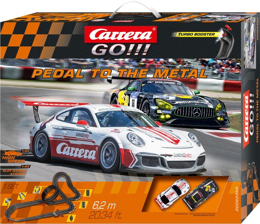 Auf der Langstrecke sind die Carrera GO!!! Fahrzeuge ebenfalls echte Profis – im „Pedal to the Medal“-Set ist bereits der Name Programm: Auf der 6,2 Meter langen Rennbahn müssen die jungen Piloten Nerven bewahren, um die beiden PS-starken Boliden, den Porsche GT3 Lechner Racing und den Mercedes-AMG GT3, durch die anspruchsvolle Strecke mit Looping, Steilkurve und Highspeed-Gerade zu lotsen.