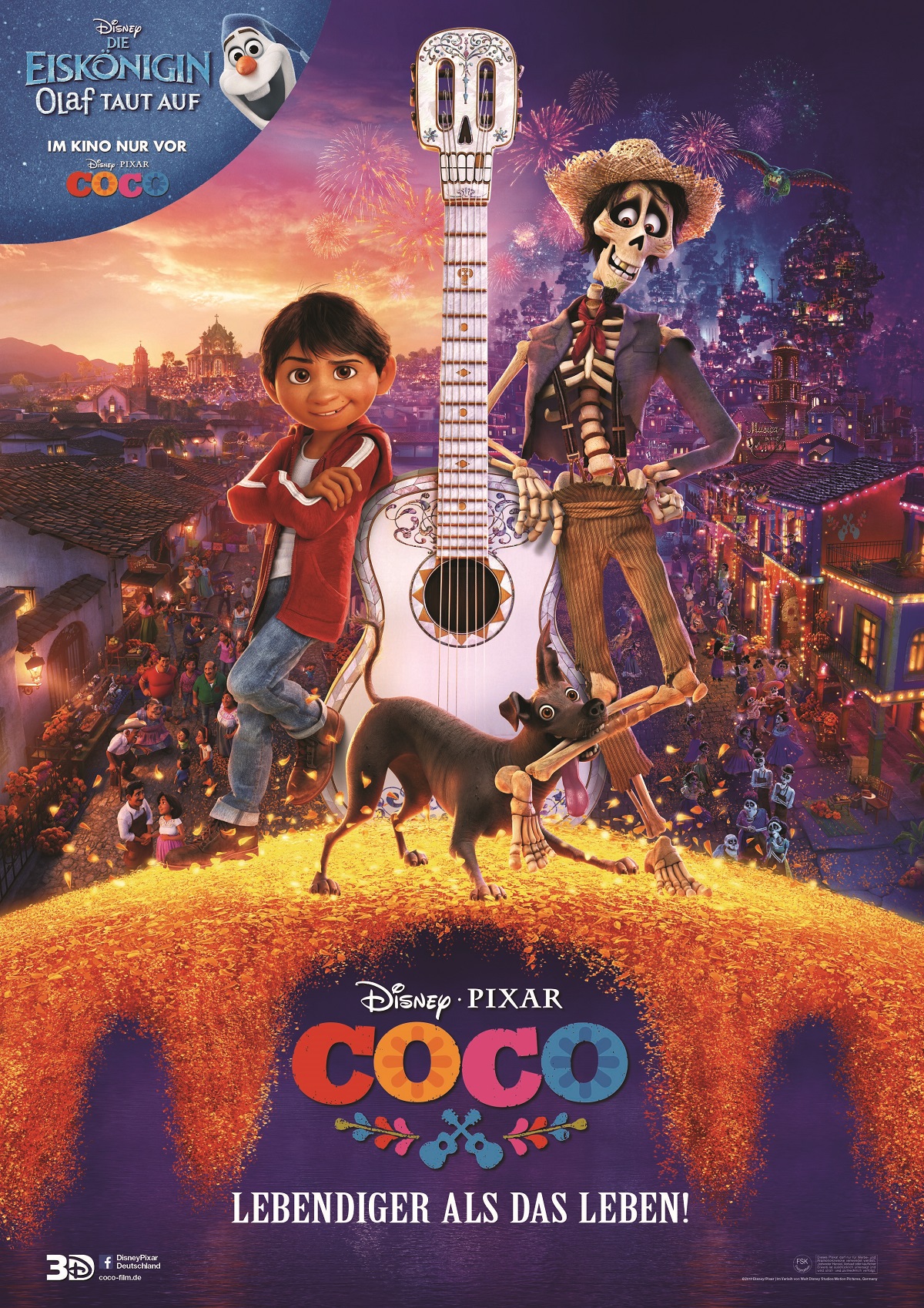 Seit diesem Wochenende hat Disney•Pixars Animationshighlight COCO insgesamt 1,06 Million deutsche Fans mit einem Umsatz von 8,2 Millionen Euro in die hiesigen Kinos gelockt und ist damit der diesjährige Feiertagshit für Familien.