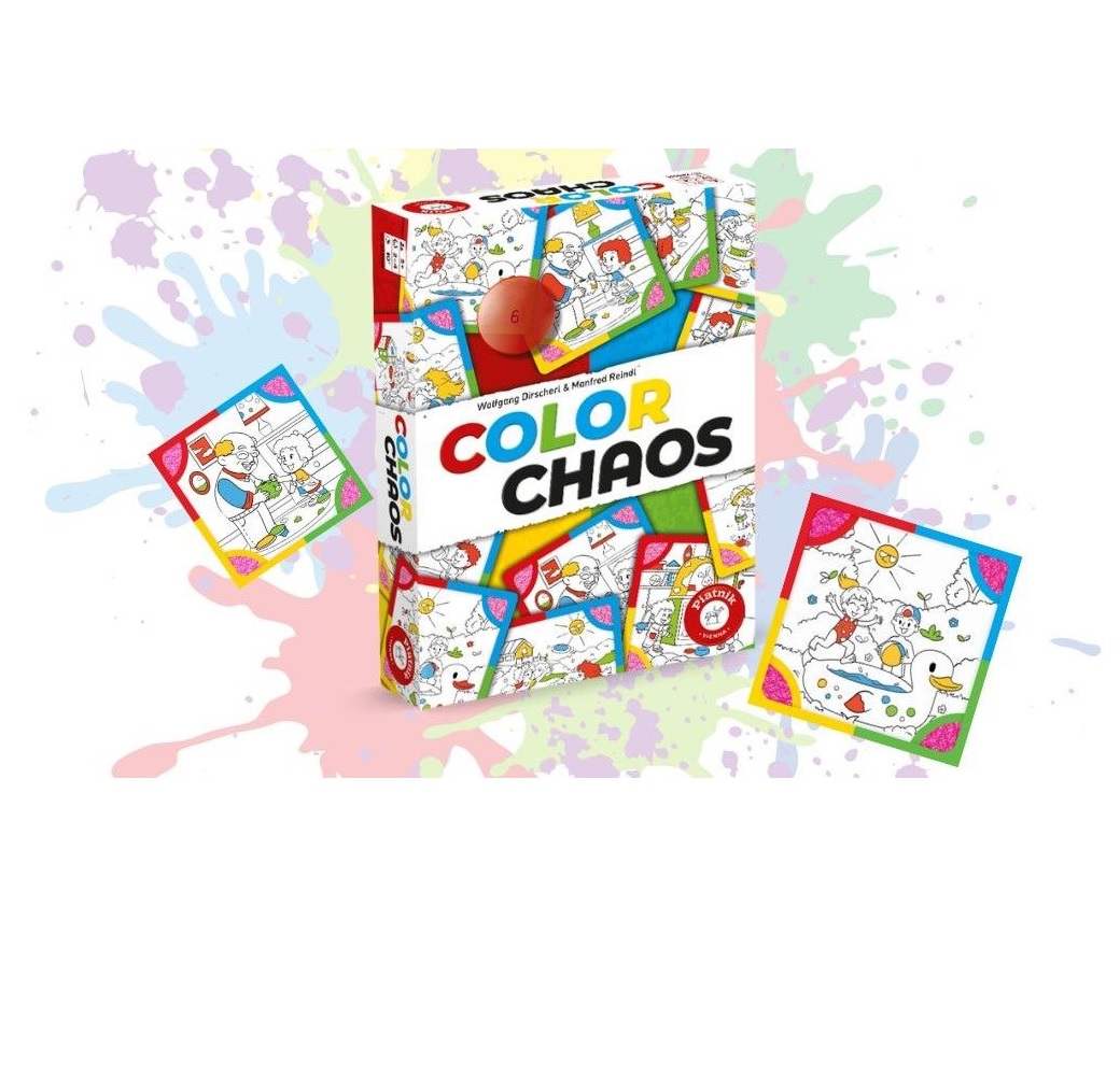 Fünf Spielvarianten sorgen für Abwechslung und langanhaltenden Spielspaß. Wer es schafft, in diesem bunten Farb-Chaos den Überblick zu behalten und am schnellsten die gesuchte Karte findet, wird „Color Chaos“-Champion.