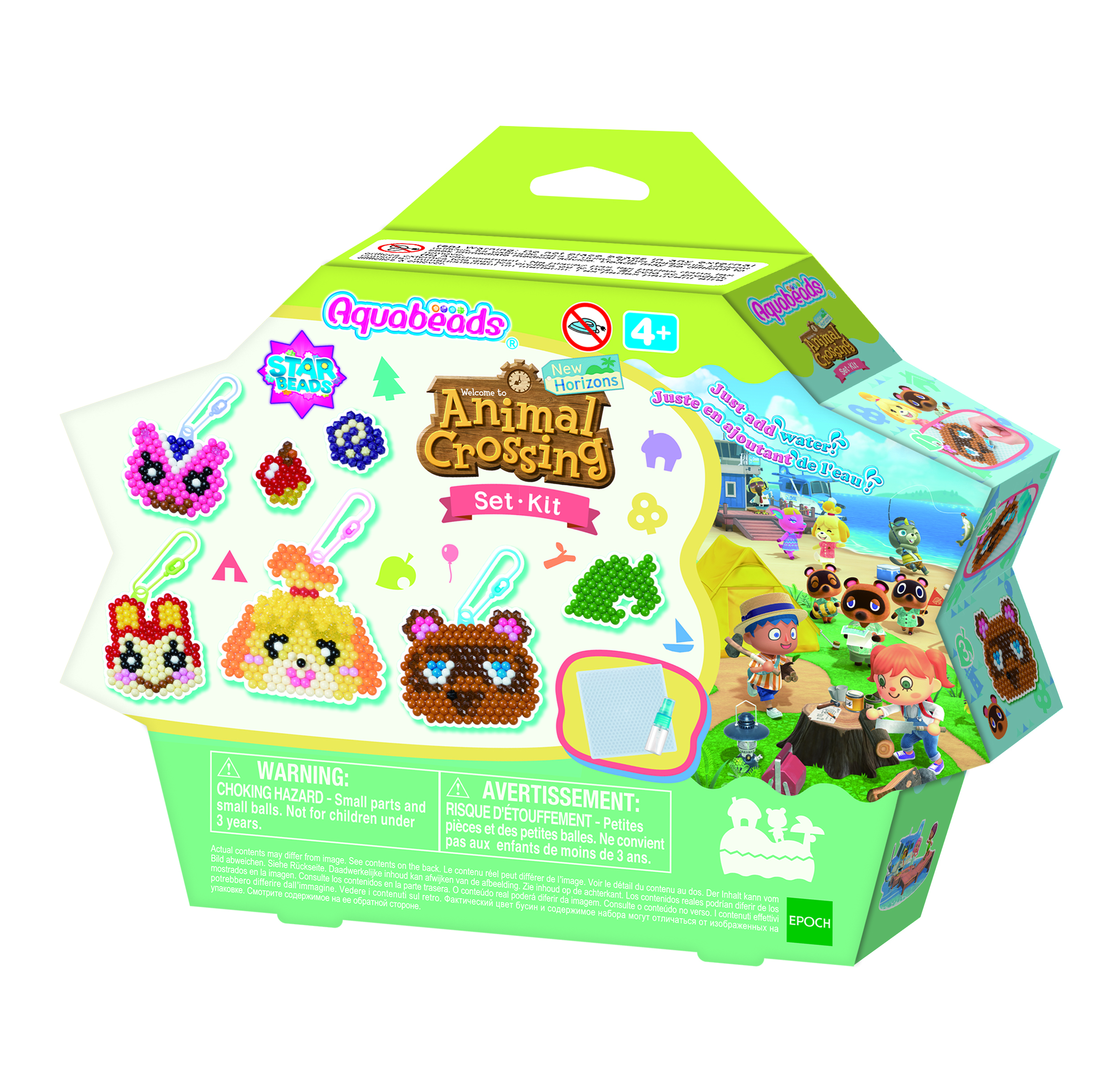 Im Aquabeads Animal Crossing™: New Horizons Figurenset sind über 800 bunte Bastelperlen, vier Anhänger-Adapter, eine Bastelplatte, ein Sprüher und die Motiv-Vorlagen enthalten. Mit dabei sind auch die neuen Sternperlen, die die Perlenbilder noch plastischer und flauschiger aussehen lassen.