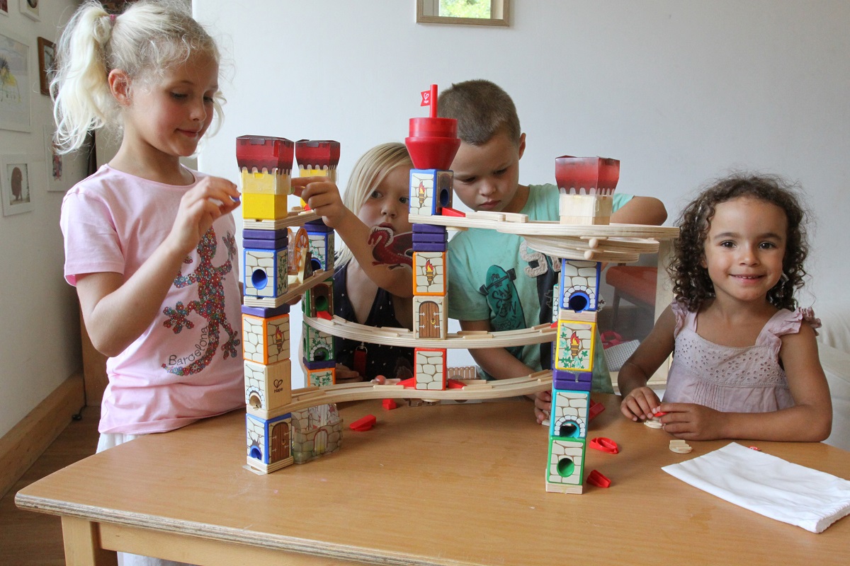 Dabei ließen die Jungen und Mädchen ihrer Fantasie beim Konstruieren freien Lauf, experimentierten immer wieder mit der Schwerkraft und ließen sich von der wunderschönen mittelalterlichen Spielwelt inspirieren. Auch die einfache Handhabung und pfiffige Details wie Drehturm, Wassermühle und Zugbrücke waren gute Argumente für die Juryentscheidung.“