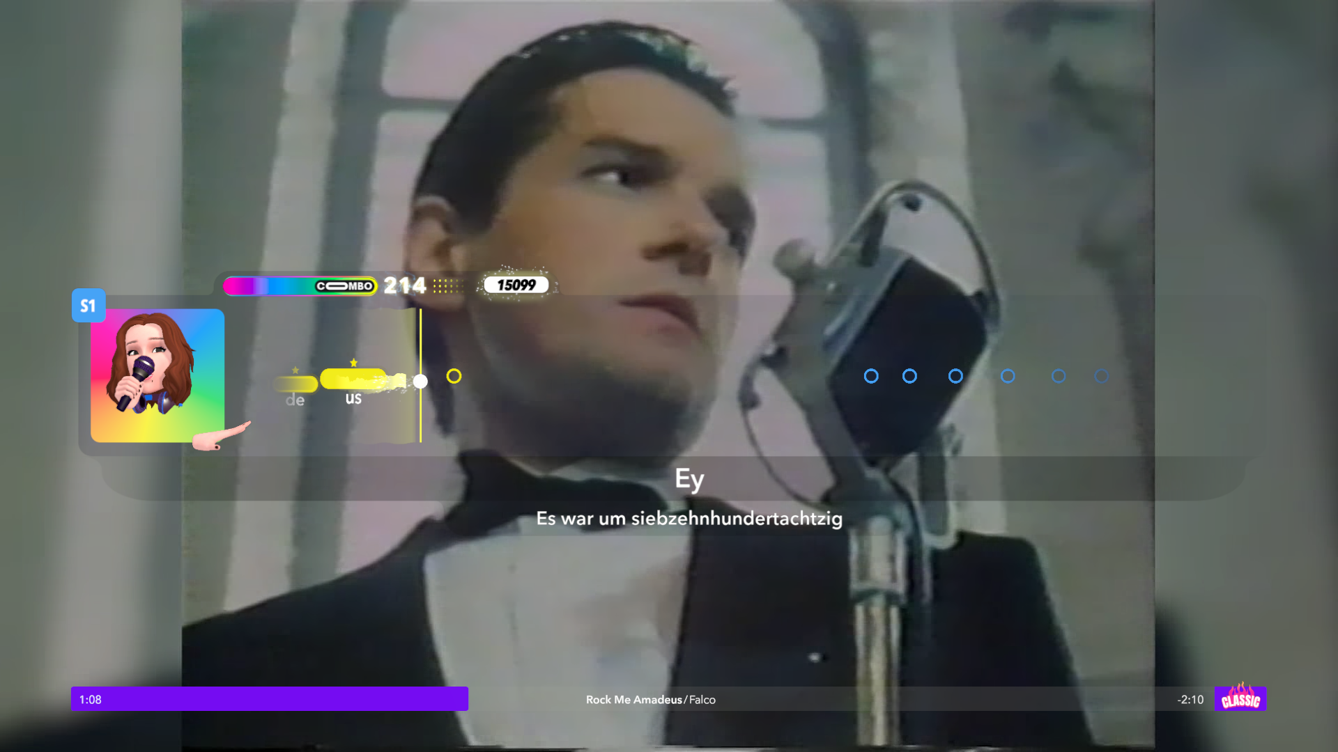 Es können beispielsweise Songs von Billie Eilish, Helene Fischer, Silbermond, Falco und vielen weiteren Stars geschmettert werden.