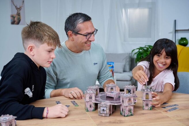 Vor Beginn des Spiels ist das Schloss gemäß der beiliegenden Anleitung zusammenzusetzen. Die Aufbauanleitung ist präzise, alle Teile passen exakt. Übermäßige Kraftaufwendung ist nicht erforderlich.