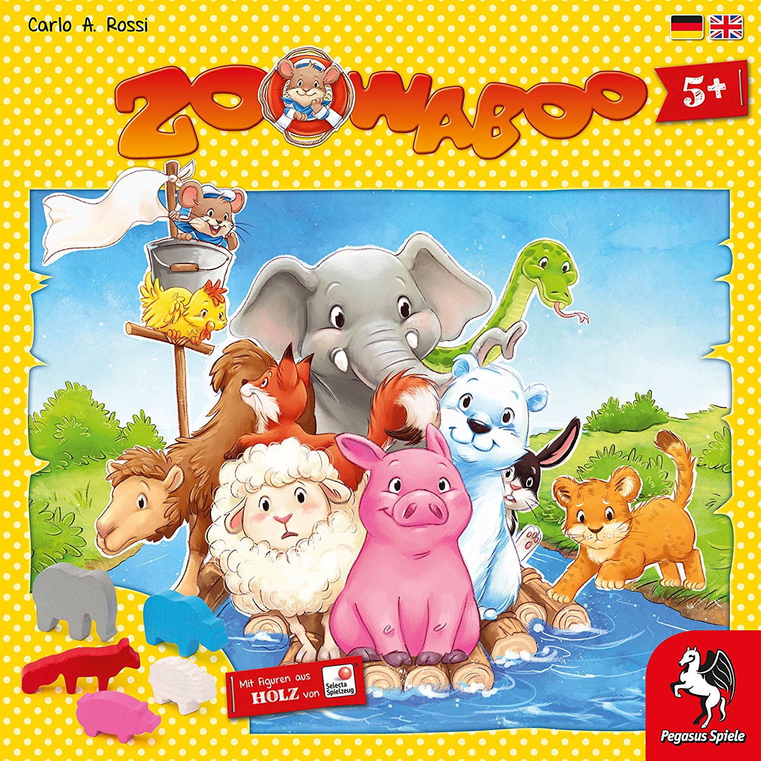In Zoowaboo gilt: Alle Tiere an Bord! Aber Moment: Passt das überhaupt? In dem 2009 nominierten Kinderspiel des Jahres müssen 2-4 Spieler einschätzen, wie viele der bunten Holztiere auf ein Floß passen.