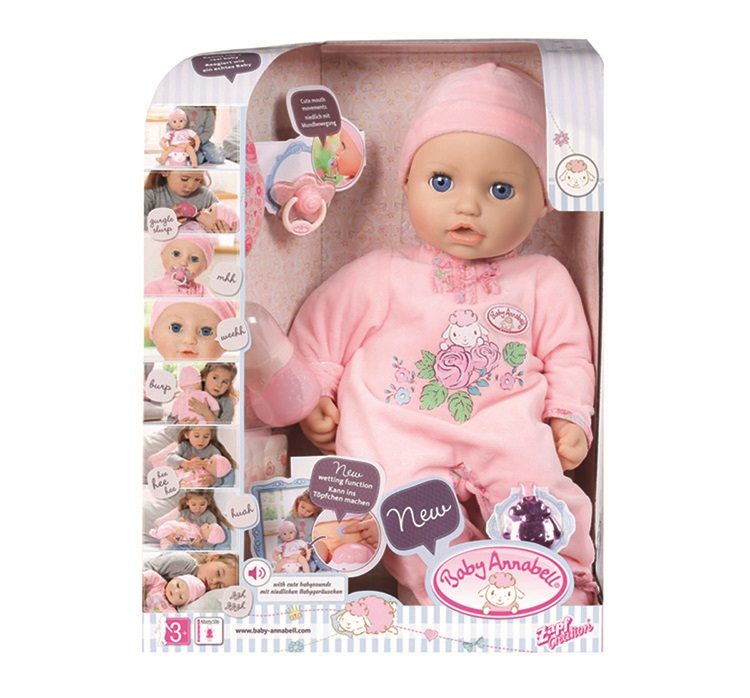 Ganz neu: Wie ein echtes Baby kann die batteriebetriebene Funktionspuppeseit neuem in ihre Windeln machen.Mit dem umfangreichen Zubehör vom Puppenbett bis zuSchnuller, Fläschchen & Co. können Kinder mit Baby Annabell®den kompletten Babyalltag nachspielen.
