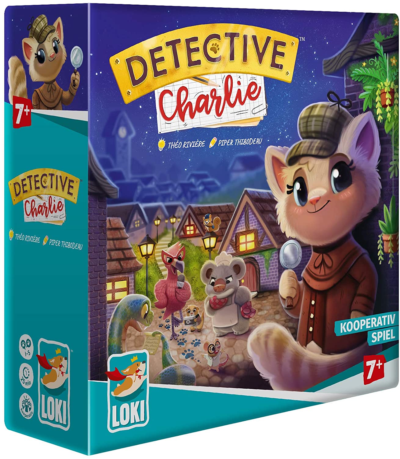 „Detective Charlie“ ist ein kooperatives Deduktionsspiel, das mit niedlichen Illustrationen und witzigen Geschichten spielerisch die Kombinationsgabe und Konzentration der Nachwuchsdetektive schult.