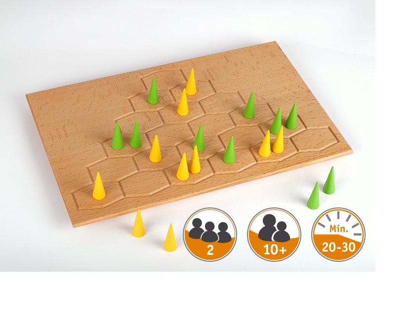 Auch bei dieser Variante sind Spielsteine und Anleitung für das 2-Personen-Spiel „Fuchs und Gänse“ mit enthalten.