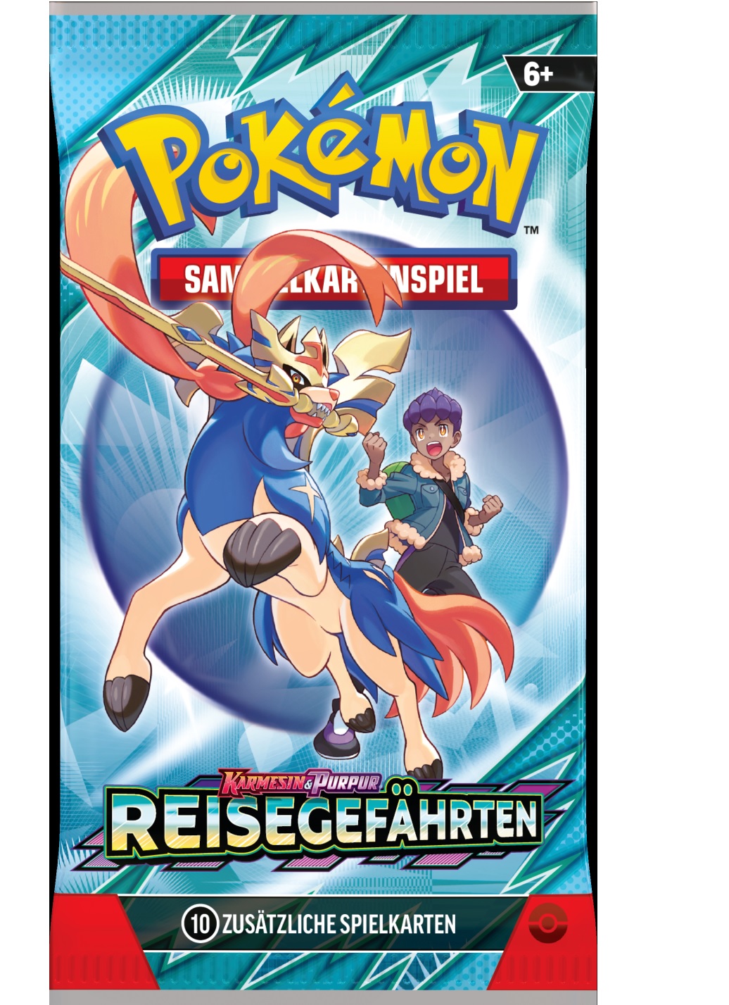 Spieler:innen können Karmesin & Purpur – Reisegefährten in Boosterpacks, Top-Trainer-Boxen und verschiedenen Kollektionen bei Händlern auf der ganzen Welt erhalten.