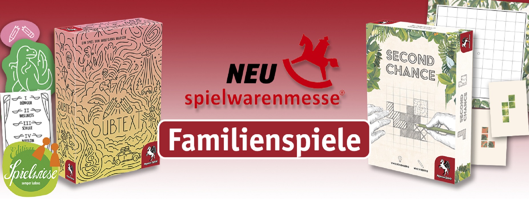 Auf der diesjährigen Spielwarenmesse in Nürnberg ist die Edition Spielwiese mit starken Neuheiten zweier Erfolgsautoren vertreten: Subtext von Wolfgang Warsch und Second Chance von Uwe Rosenberg.