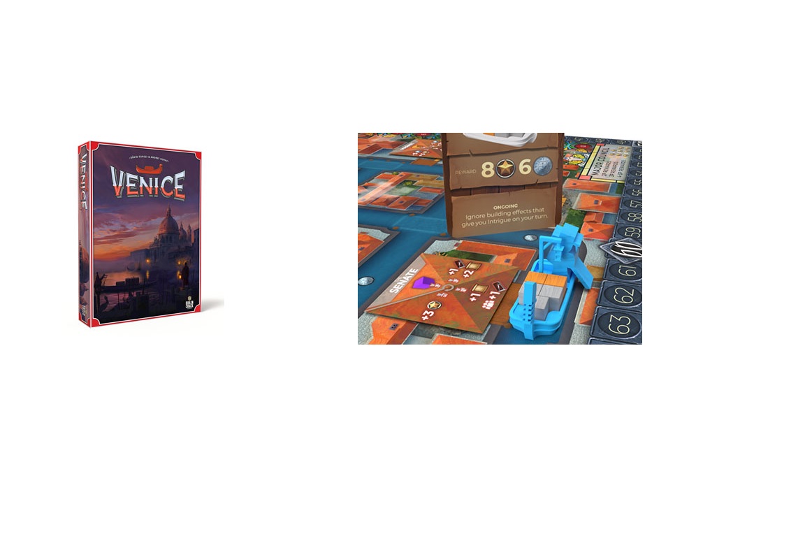 Venedig ist ein zugängliches Eurospiel von Dávid Turczi (Anachrony, Solospiel von Trismegistus) und Andrei Novac (Versailles, Teotihuacan) für 1-5 Kennerspieler ab 14 Jahren mit einer Spielzeit von ca. 20 Minuten pro Spieler.