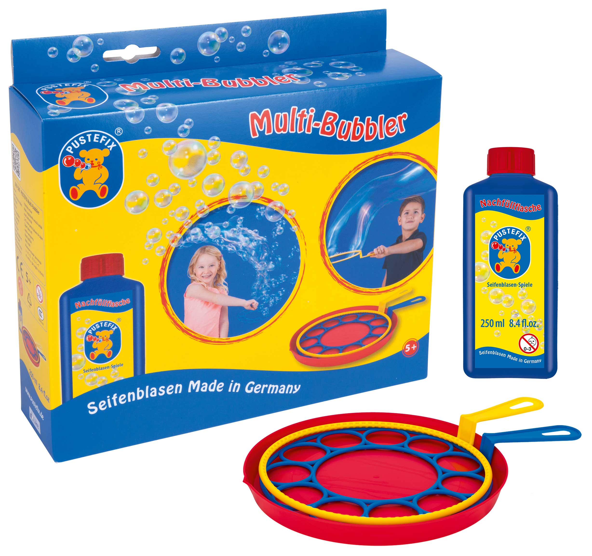 PUSTEFIX ist sehr viel mehr als nur die ikonische blaue Dose. Verschiedene Blasringe, Bubble-Schwerter, Multi-Bubble Spielzeuge oder Partybubbler – mit zahlreichen innovativen Seifenblasenspielzeugen begeistert PUSTEFIX seit der Gründung Jahr für Jahr aufs Neue große und kleine Fans.
