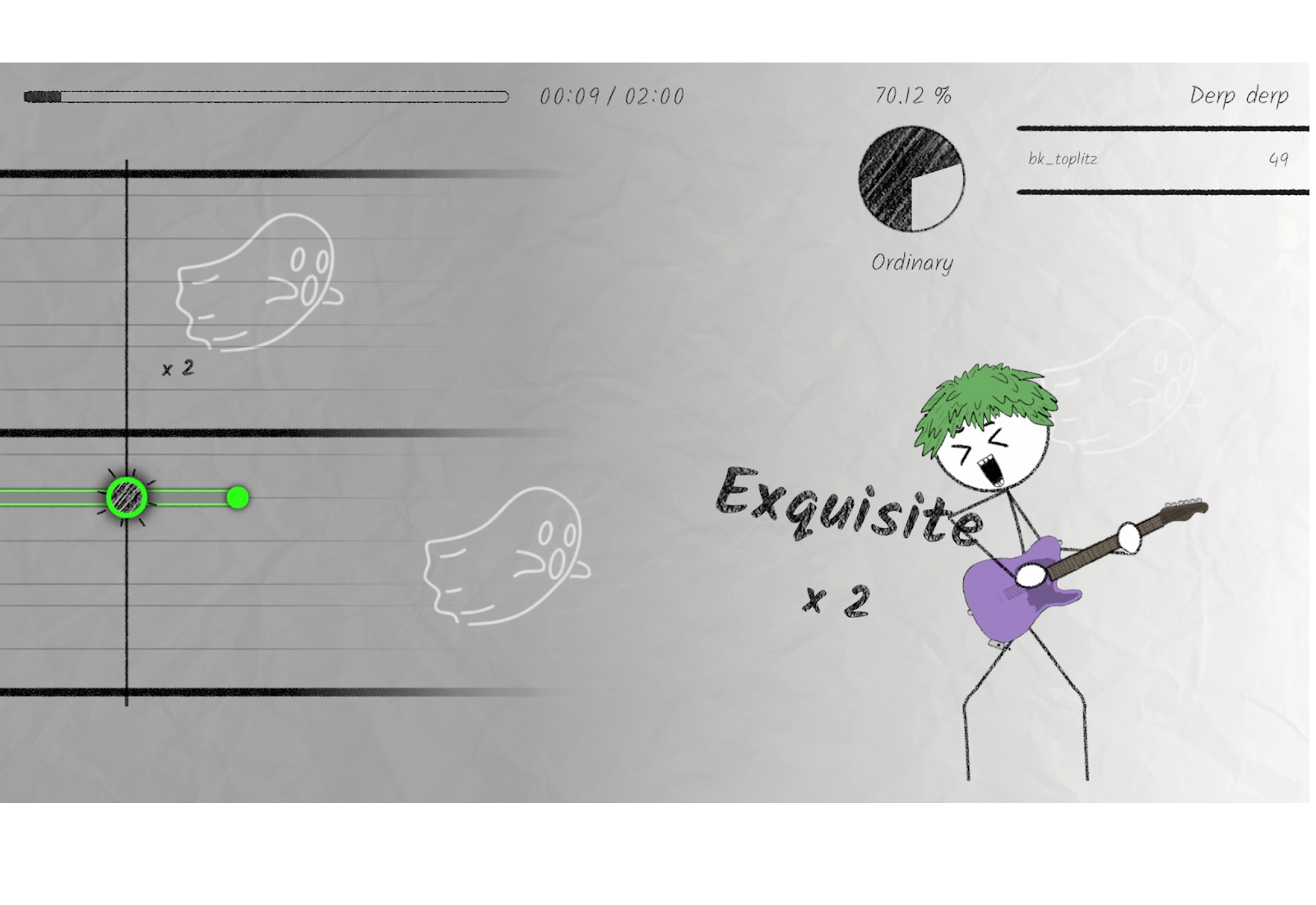Das Spiel wartet mit einem doch vielfältigen Spektrum auf. Es reicht vom Miau der Katze bis zur Gitarre. Insgesamt stehen 15 Instrumente und 20 Musikstücke zur Auswahl. Man kann auch eigene Songs einspielen und anderen zur Verfügung stellen.