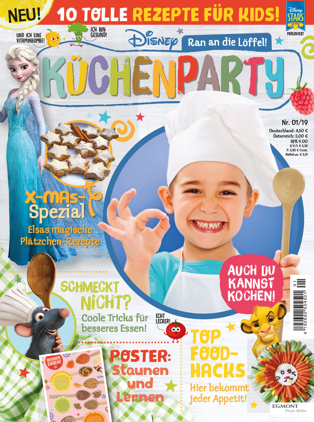 Im neuen Magazin „Disney Stars präsentiert Disney Küchenparty“ warten spannende Rezepte zum Kochen und Backen, witzige Küchen-Tricks, Tipps zu saisonalem Gemüse und aktuelle Food-Trends auf die kleinen Chefköche.