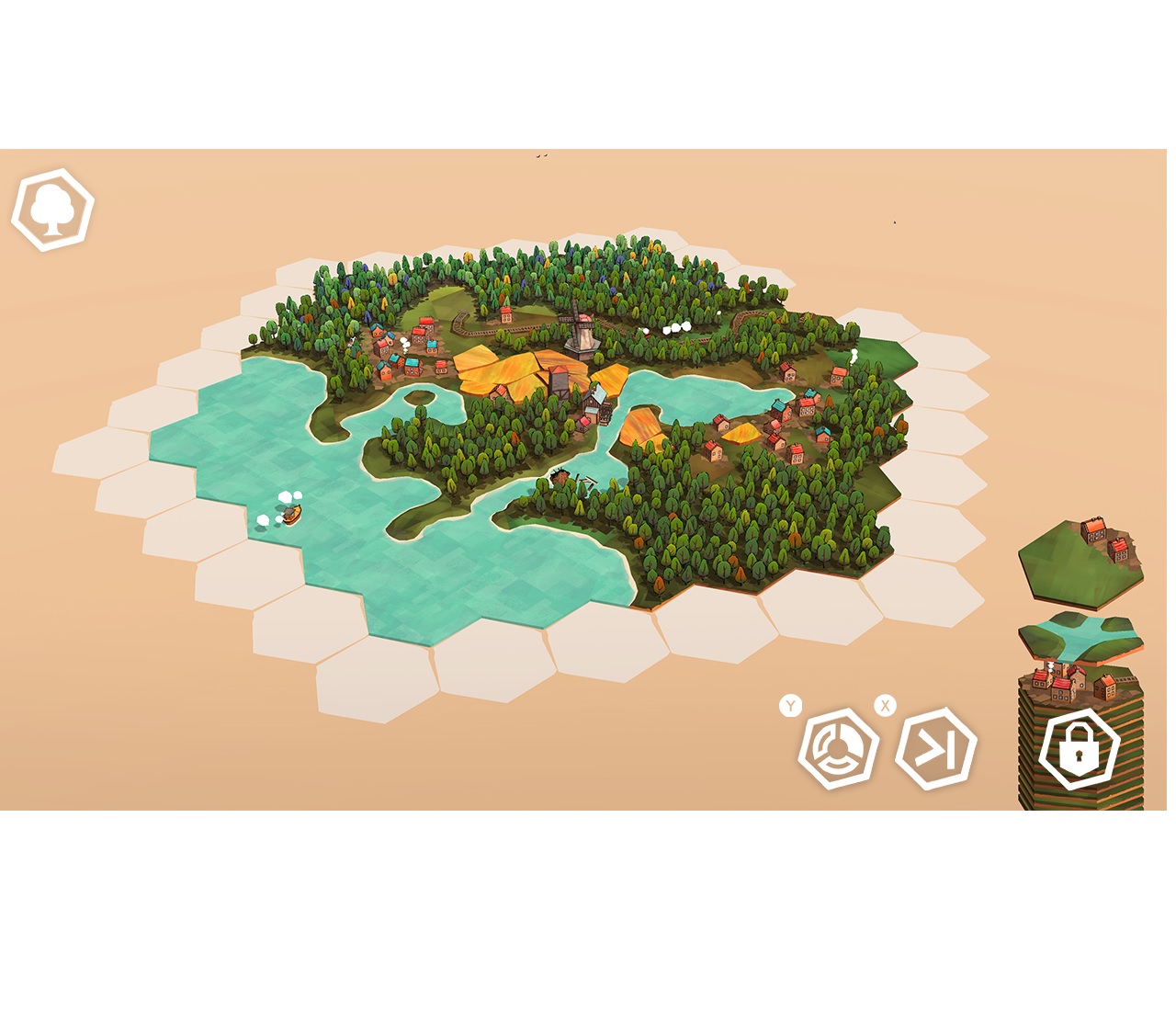 Der Spieler legt sechseckige Plättchen ab und daraus entstehen Landschaften, Wald, Wiesen oder Getreidefelder. Dabei sollten diese Flächen zusammenhängend sein, schließlich gibt es Aufträge, wie ein Getreidefeld aus einer entsprechenden Anzahl an Plättchen soll entstehen.