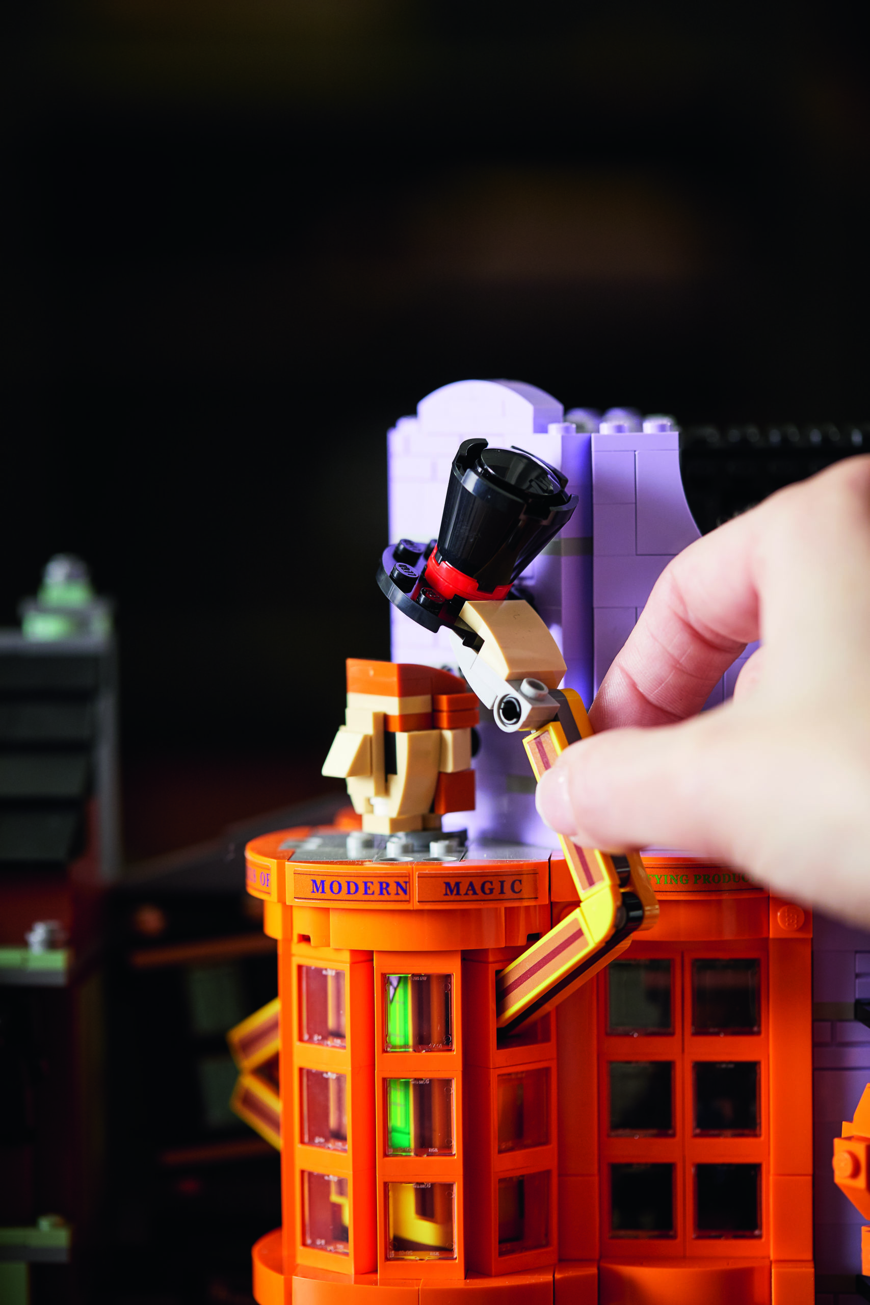 Mehr als einen Meter lang und bestehend aus über 5.000 Teilen, beinhaltet die LEGO® Winkelgasse alle berühmten Shops aus der Zauberwelt. Das facettenreiche und vielseitige Modell verfügt über verschiedene Module, die den Fans die Möglichkeit bieten, die Geschäfte in einer Reihe aufgebaut, umgedreht oder einzeln zu präsentieren. Durch die authentischen Details aus den Filmen, kommt die ganze Atmosphäre der Harry Potter™ Welt zur Geltung.
