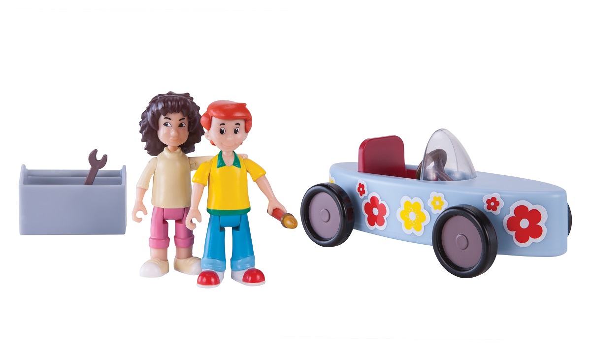 Für den schnellen Zieleinlauf der Blümchen-Seifenkiste sorgen der Werkzeugkoffer sowie ein Schraubenschlüssel und Pinsel.