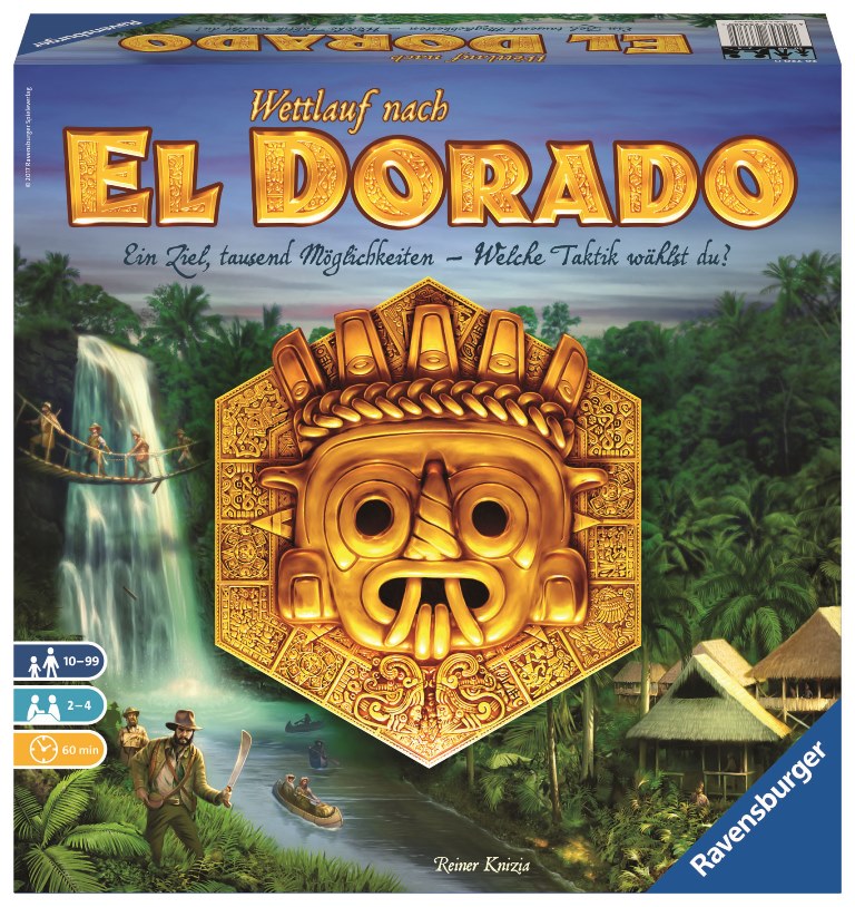 Wettlauf nach El Dorado ist ein Deck-Building- und Wettlaufspiel, bei dem Abenteuerlust und Taktik gefragt sind. Zusätzliche Varianten für zwei Spieler und erfahrene Schatzsucher ergänzen das Basis-Spiel. Als Spielplan stehen neun beidseitig gestaltete Tafeln zur Verfügung, die variabel zusammengesetzt werden können. Das Familienspiel ist ab zehn Jahren geeignet, kostet ca. 38 Euro und ist ab März 2017 im Handel erhältlich.