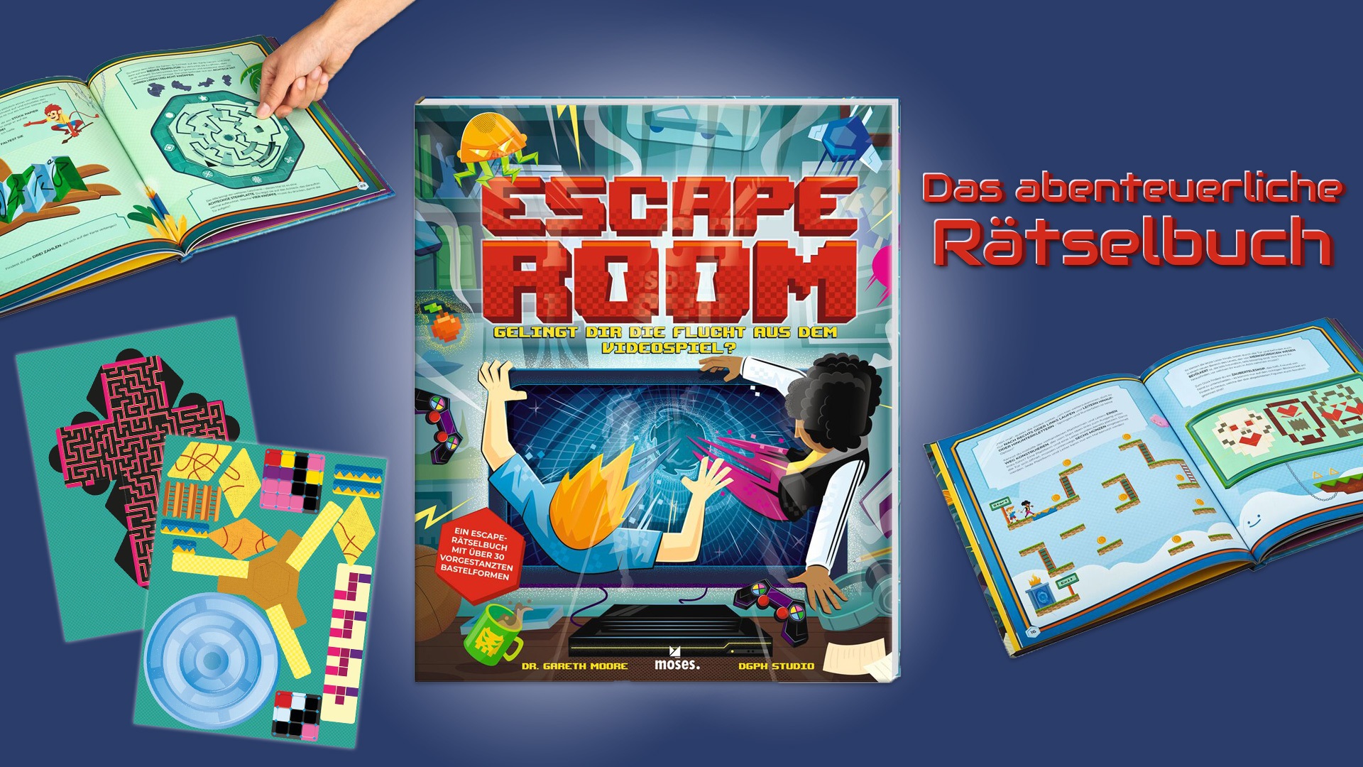 Escape Room kombiniert eine aufregende Geschichte mit kniffligen Rätseln, tollen Illustrationen und 3D-Bastelformen. Nur, wer die Aufgaben richtig löst, kann aus dem Videospiel entkommen!