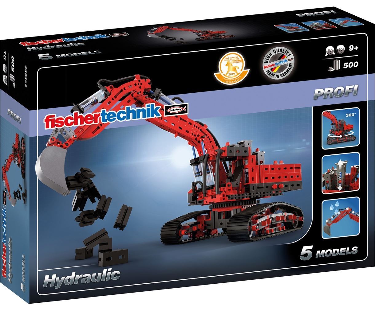 Mit diesem beeindruckenden Modell verdeutlicht fischertechnik die Grundprinzipien der Kraftübertragung mit flüssigen Medien. PROFI Hydraulic kostet 99,95 Euro und enthält 478 Bauteile.