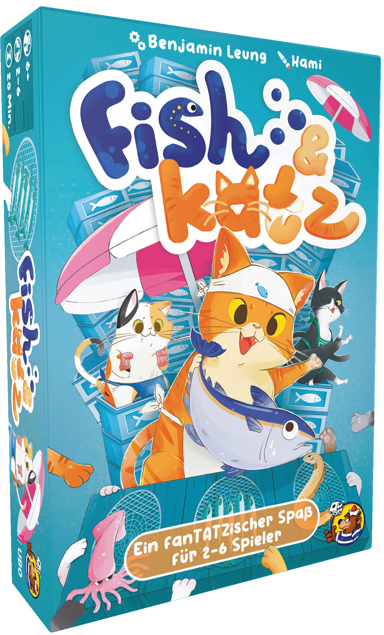 Mit gestrickten Katzen-Tatzen als Fingerpuppe fangen die Mitspielenden Fischkarten unterschiedlicher Wertigkeit. Insgesamt gibt es 50 Fischkarten: Flundern, Sprotten, Lachse, Aale, Kugelfische und Thunfische.