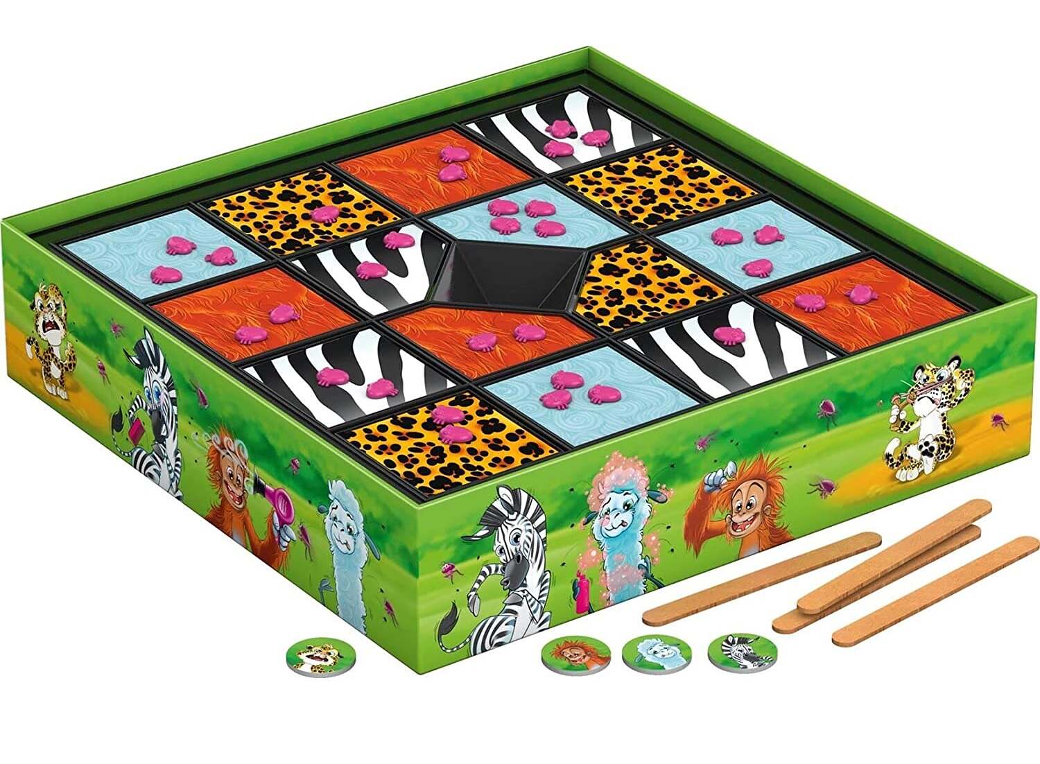 Ein munteres Hin-und-Her-Gehopse ist das, bei dem man schnell reagieren und gut zielen muss, um zu gewinnen. Wer schafft es zuerst, alle vier Spielfelder des eigenen Tieres von den lästigen Plagegeistern zu befreien?