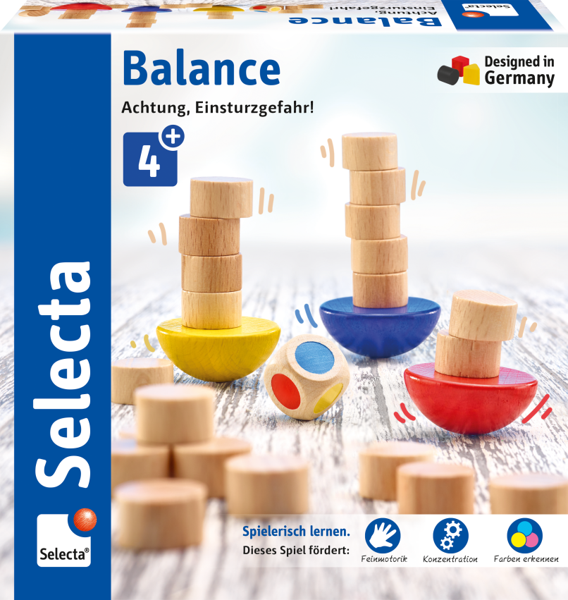 Das einfache Spielprinzip und das handverarbeitete Material begünstigen die Feinmotorik sowie das Konzentrationsvermögen der Kleinen und machen Balance zum idealen Einsteigerspiel – ob allein gespielt oder gemeinsam mit den Eltern.