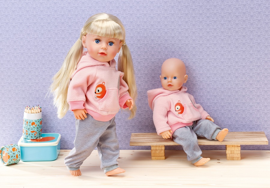 Fast alle Kleidungsstücke gibt es in zwei verschiedenen Größen: Die kleineren Outfits tragen neben My Little BABY born und My First Baby Annabell auch andere Puppen mit der Größe von 30 bis 36 cm. Die Kleidung für Puppen mit der Größe von 38 bis 46 cm passt innerhalb der Produktfamilie von Zapf Creation BABY born und Baby Annabell.