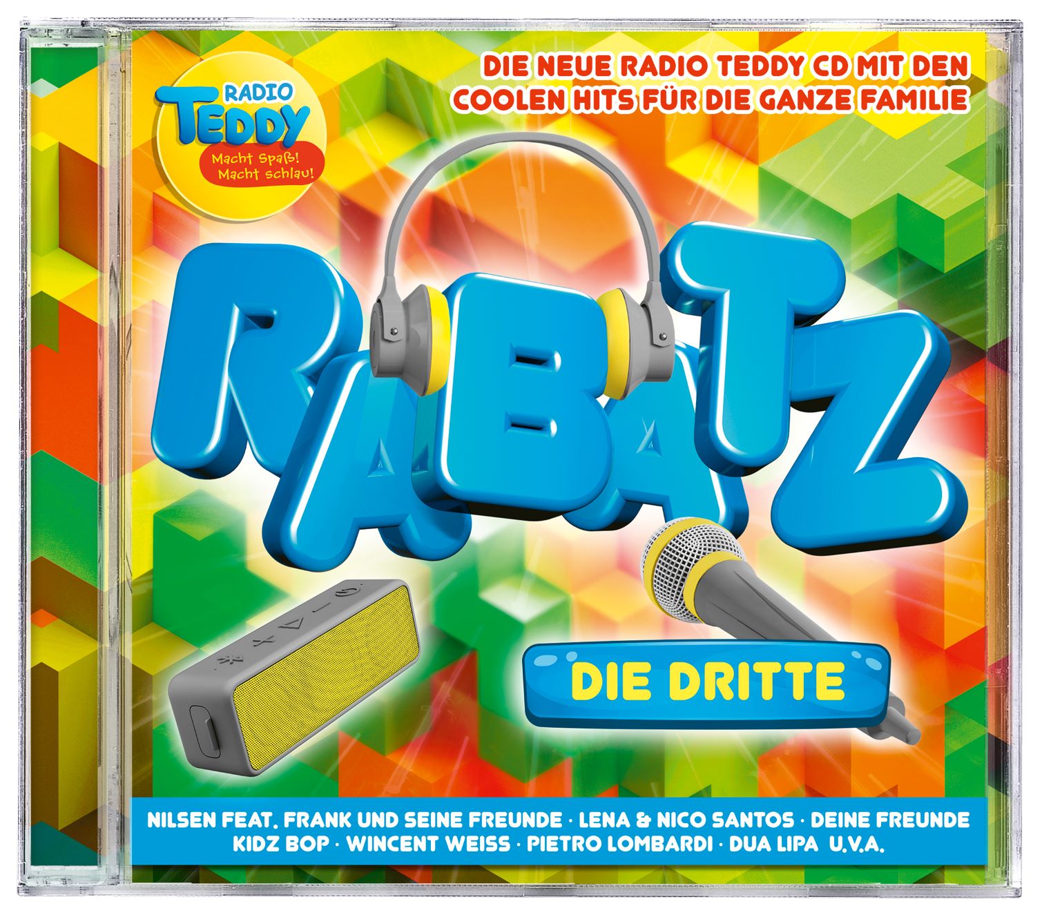 RABATZ heißen nicht nur die großen Radio TEDDY-Familienfestivals, RABATZ ist auch die neue HIT-Marke aus dem Hause TEDDY, die die beliebtesten Songs der Hörer präsentiert. RABATZ steht für perfekt zusammengestellte Hit-Sammlungen, die speziell auf die Zielgruppe Familien mit Kindern ab 3 Jahren zugeschnitten sind. Und RABATZ DIE DRITTE ist DIE ultimative aktuelle Family-Compilation mit den stärksten Ohrwürmern für Frühjahr und Sommer.