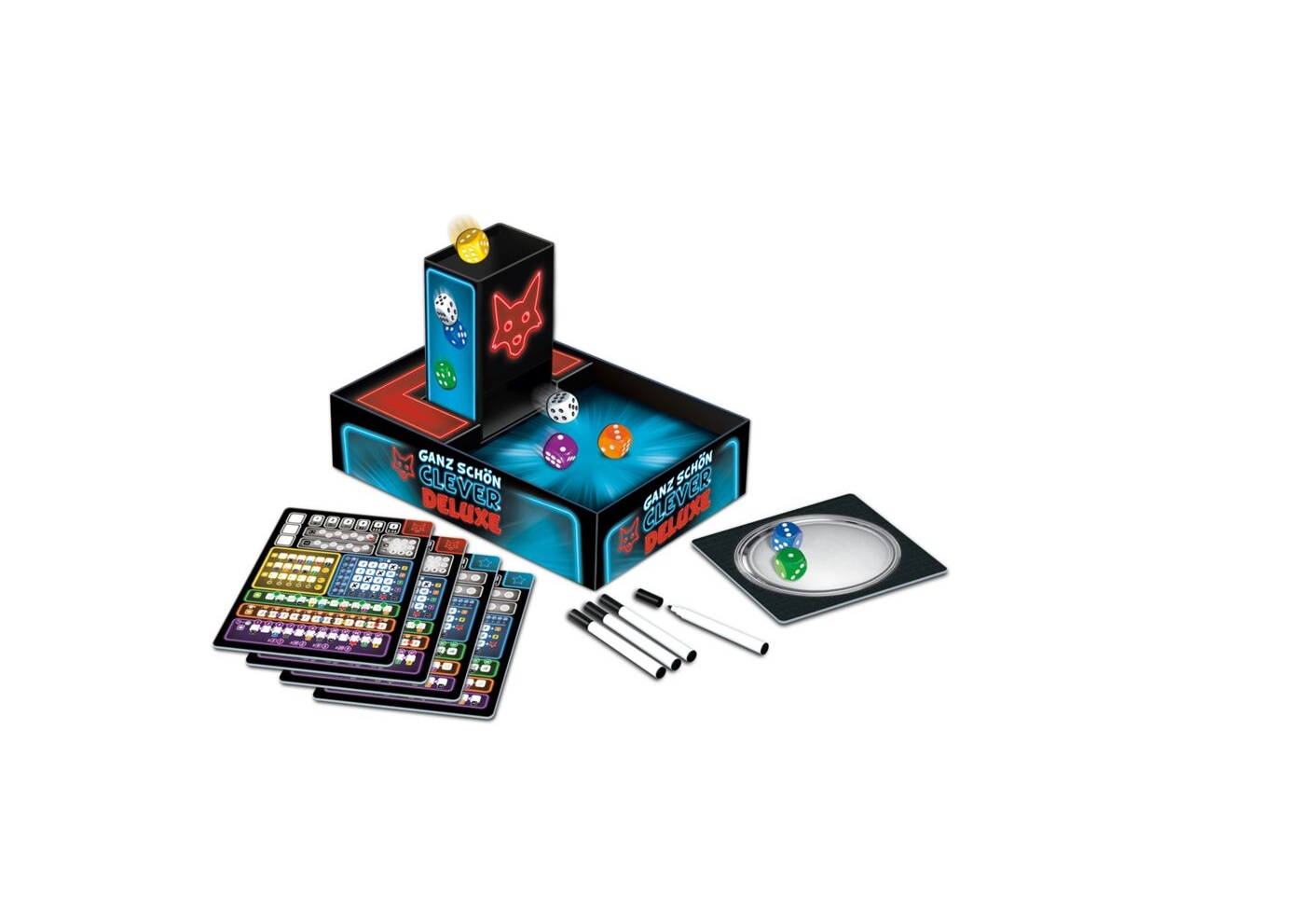 Das beliebte Spielprinzip bleibt unverändert, für neue Herausforderungen sorgt die Clever- Mixed Variante, die bekannte Elemente mit einem völlig neuen Bereich kombiniert. Mit Würfelturm und abwischbaren Wertungstableaus.