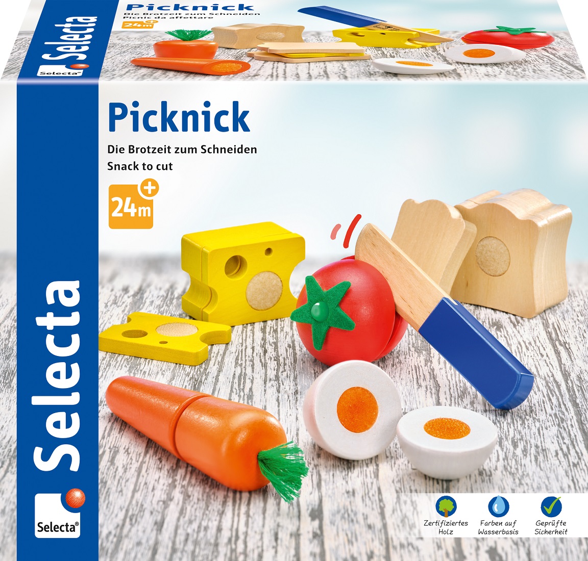 Mmhhh, sieht das lecker aus. Mit dem Picknick von Selecta können sich Geschwister ihr Pausenbrot in gemeinsamer Zusammenarbeit selbst belegen. Zwei Scheiben Brot, ein Stück Käse und ein Ei, vielleicht etwas Tomate und ab damit in die Brotdose.