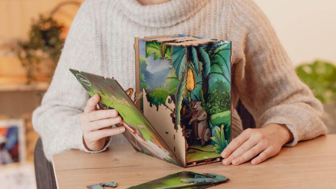 Mit den Tiny Adventures Book Nooks von Revell holen Filmfans, Bücherliebhaber und Bastelfreunde ab 14 Jahren magische Kinowelten direkt ins eigene Wohnzimmer. Die detailreichen Miniaturwelten aus lasergeschnittenem Holz sind weit mehr als einfache Buchstützen – sie sind dekorative Highlights für jedes Regal.