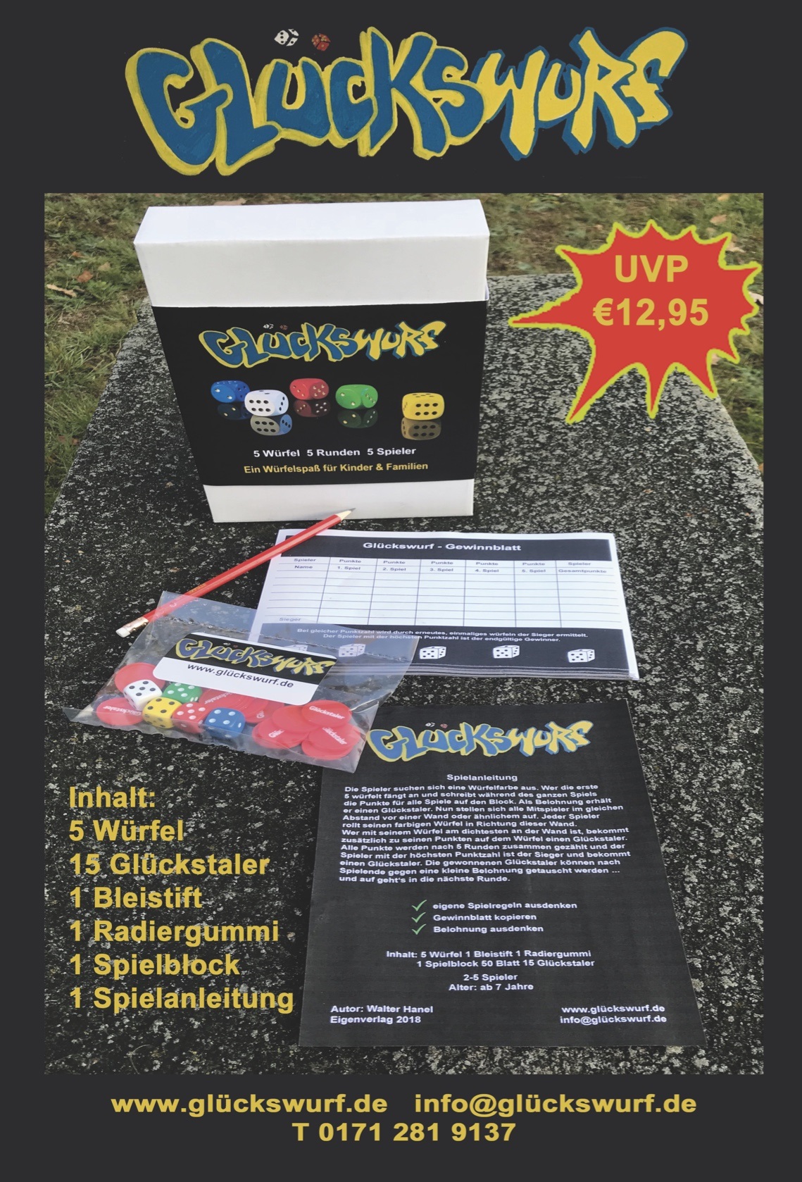 Walter Hanel ist durch sein Spiel im Kritzeln eine 1 bekannt geworden. Sein Motto, Spiele sollen einfach sein und Spaß machen. Glückswurf ist ein einfaches Würfelspiel, wo man sich auch bewegen muss.