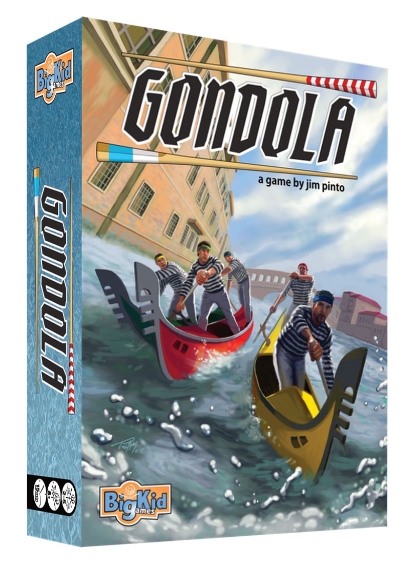 In Gondola, dem neuen Spiel des Spielautors Jim Pinto, nehmen 2-5 Spieler ab 8 Jahren die Rollen von Gondolieri ein, die versuchen als Erste durch alle fünf Kontrollpunkte zu kommen. Doch diese sind in dem Labyrinth der Kanäle von Venedig versteckt. Der schnellste unter ihnen gewinnt den Titel des Meisters der Kanäle.
