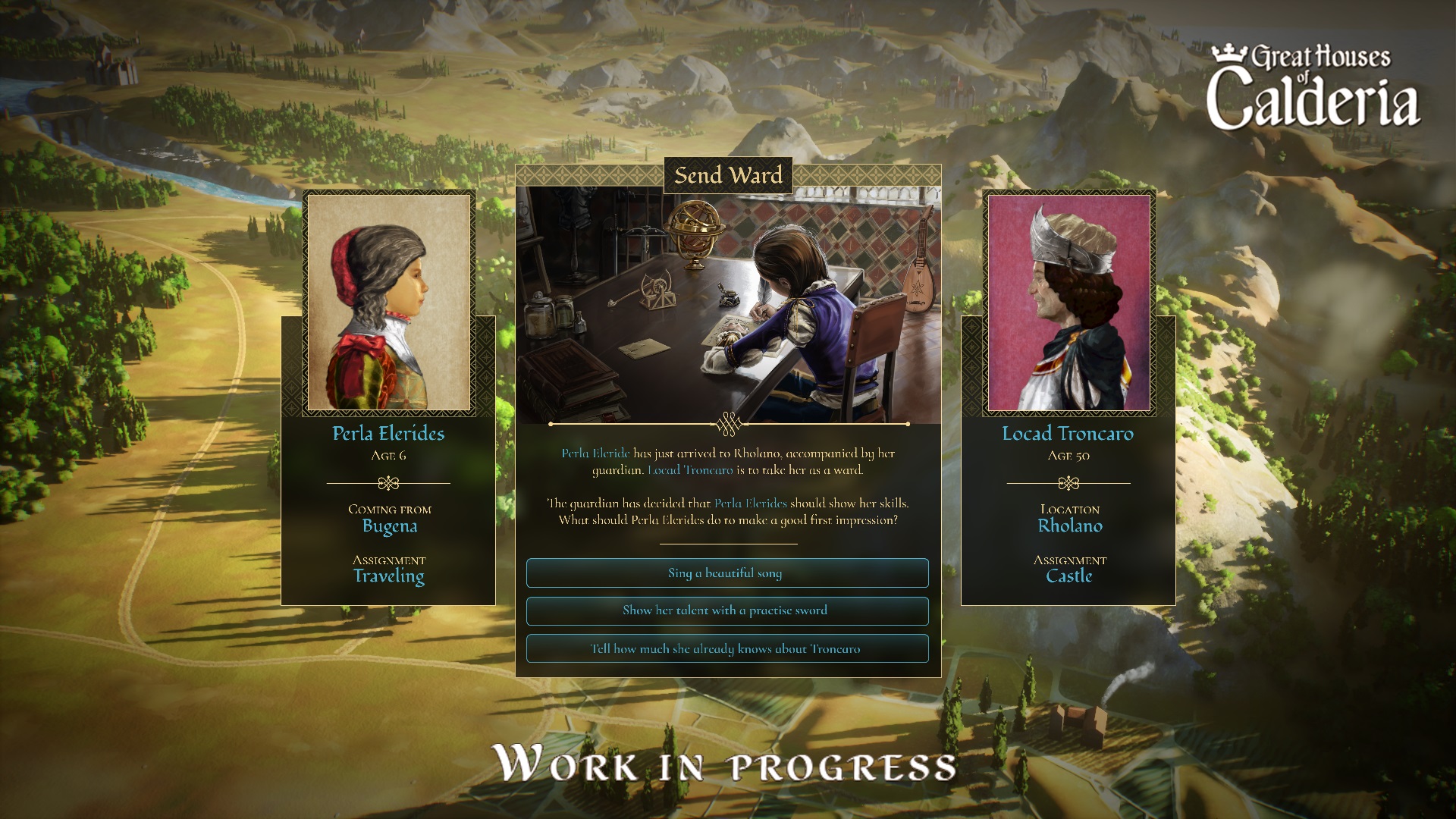 Great Houses of Calderia, das 2022 im Steam Early Access erscheinen soll, versteht sich selbst als eine Mischung aus Crusader Kings III und Game of Thrones. Spieler führen ihr Haus an und interagieren mit ihrer Familie, um diplomatische Beziehungen mit benachbarten Häusern aufzubauen.