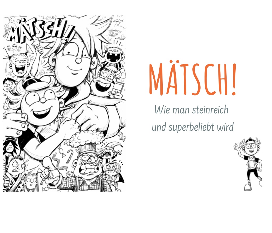 „MÄTSCH! Wie man steinreich und superbeliebt wird“ ist der erste Comic-Roman des Österreichers Max Parkos. Mit coolen ausdrucksstarken Illustrationen und einer humorvoll erzählten Geschichte, begeistert der junge Autor Kinder fürs Lesen und Zeichnen.