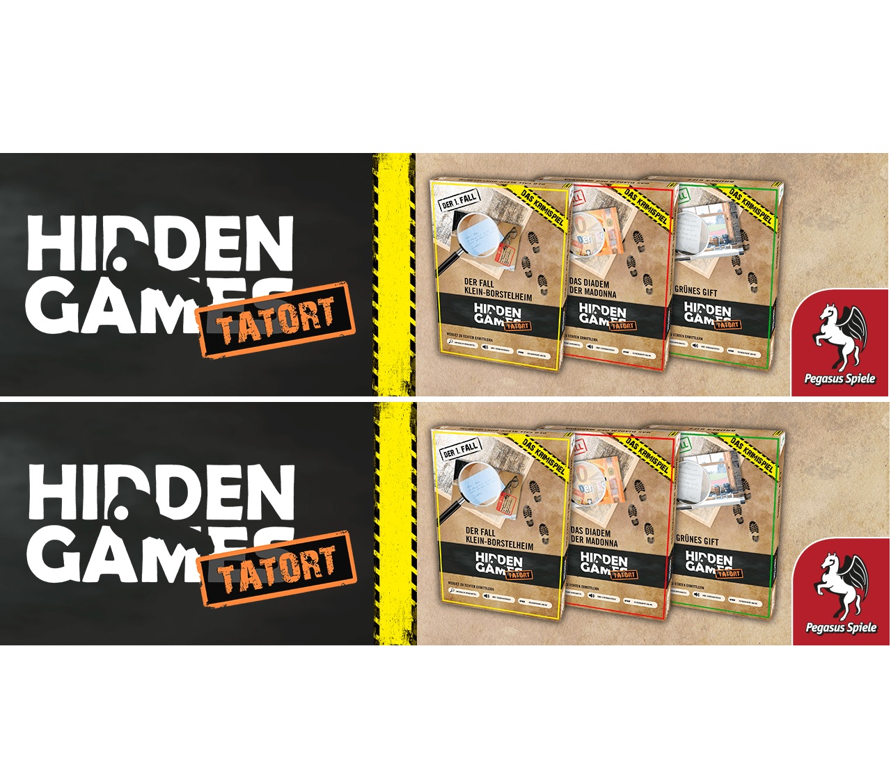 Seit Anfang des Jahres übernimmt Pegasus Spiele exklusiv den Vertrieb der Krimispielboxen von Hidden Games. Die sechs Fälle der Tatort-Reihe sowie weitere Rätselspiele sind ab sofort im Pegasus Spiele Onlineshop und im Fachhandel erhältlich.